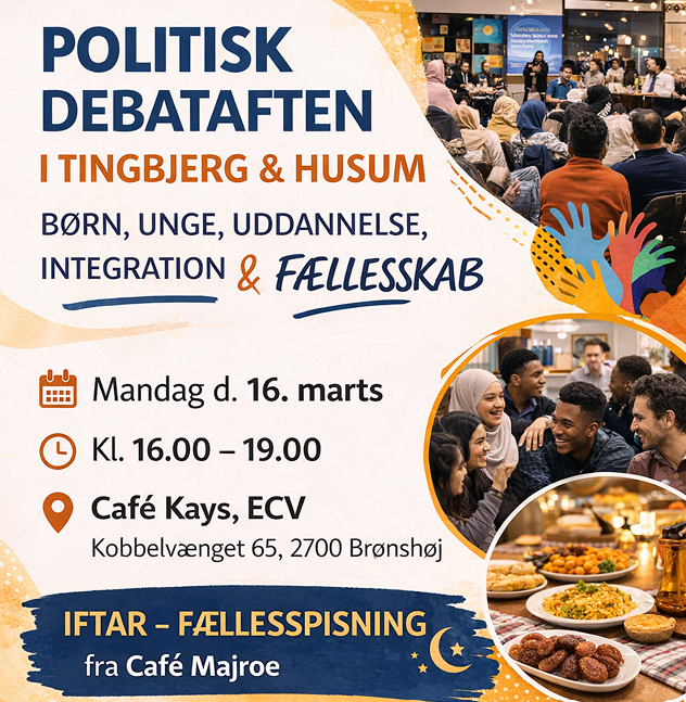 Sammen med foreningen Baba - fordi far er vigtig, Bydelsmødrene, EnergiCenter Voldparken og den boligsociale helhedsplan Fælles om Tingbjerg-Husum inviterer vi til politisk debataften i cafe Kays på EnergiCenter Voldparken